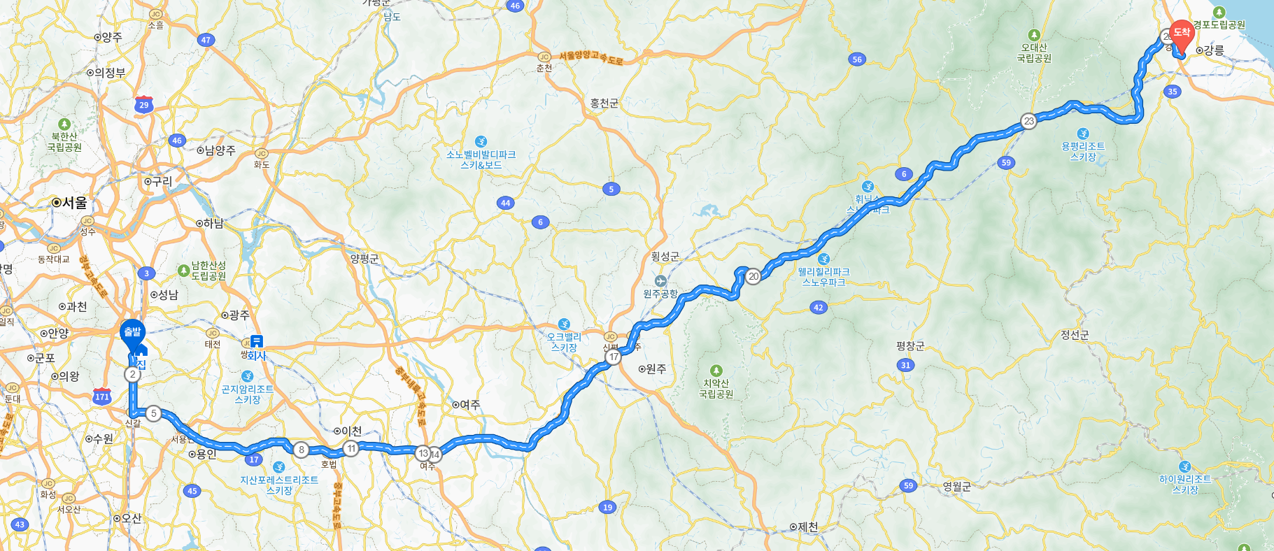 서울에서 강릉까지의 여행은 주로 경부고속도로와 영동고속도로를 통해 이루어집니다. 이 두 고속도로는 대한민국에서 가장 이용률이 높은 도로 중 일부입니다. 경부고속도로를 따라 남서쪽으로 이동한 후, 영동고속도로를 통해 동쪽으로 방향을 전환하여 강릉에 도달하게 됩니다.