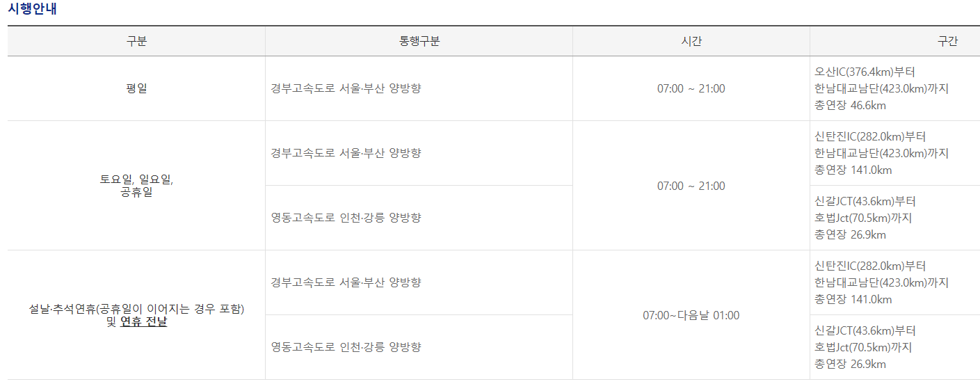 경부고속도로 버스전용차로 운영시간